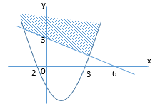 Himpunan penyelesaian dari sistem pertidaksamaan y ≥ -x2 – x + 6 dan x + 2y ≥ 6 dapat digambarkan dengan daerah yang diarsir pada gambar....