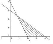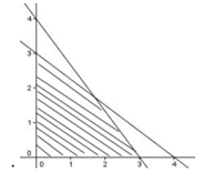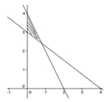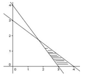 Himpunan penyelesaian sistem pertidaksamaan 2x + y ≥ 4 ; 3x + 4y ≤ 12, x ≥ 0, y ≥ 0 dapat digambarkan dengan bagian bidang yang diarsir sebagai berikut …