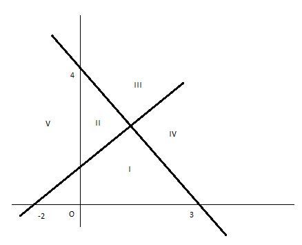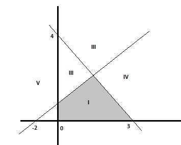 Himpunan penyelesaian sistem pertidaksamaan pada gambar terletak di daerah adalah ....
