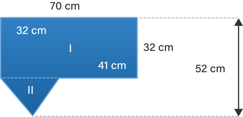 Dari gambar di atas, terdapat dua bangun datar yang berbeda. Bangun datar I adalah bangun datar persegi panjang dan bangun datar II adalah bangun datar segitiga. Untuk menentukan luas gabungan bangun datar tersebut, kita dapat menjumlahkan luas bangun datar I dan luas bangun datar II, dengan rumus :