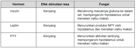 Hormon yang berperan dalam regulasi rasa kenyang diantaranya adalah …