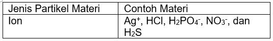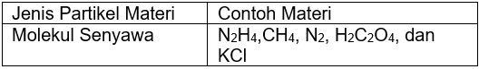 Hubungan antara jenis partikel materi dengan contohnya yang tepat adalah...