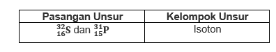 Hubungan yang benar mengenai isotop, isoton, dan isobar dengan unsur- unsurnya adalah ....