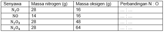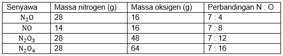 Nitrogen dan oksigen dapat membentuk senyawa , ,, dan , dengan komposisi massa sebagai berikut!