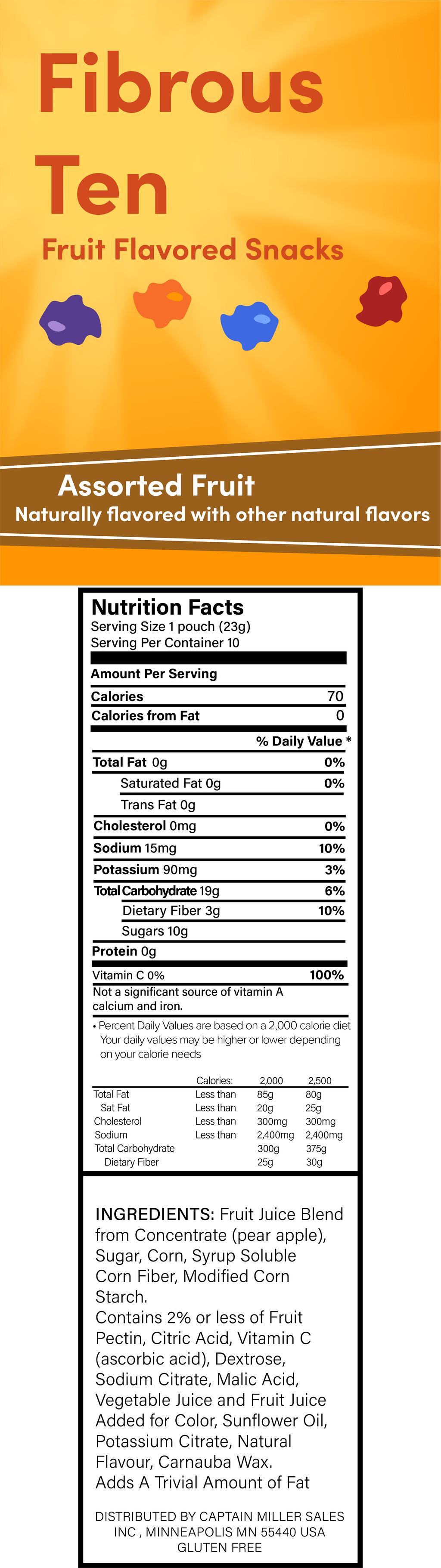 I like snacking very much. However, I always choose healthy snacks. One of the healthy snacks is (1) ____. It's a kind of fruits (2) ____ snacks. It is made of healthy and safe ingredients. Some of them are fruit juice blend from concentrate, sugar, (3) ____, and soluble corn fiber. We can also check the (4) ____ in the label of its package. The snack contains 70 (5) ____. It's very little, so it won't give bad impacts to our body size. Moreover, the total fat is (6) ____. It means we won't gain weights if we eat the snacks. The best thing I can tell from the snacks is that it contains (7) ____ 100%. It's perfect, right? It makes me calm every time I eat the snacks since it's healthy.