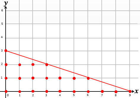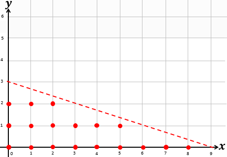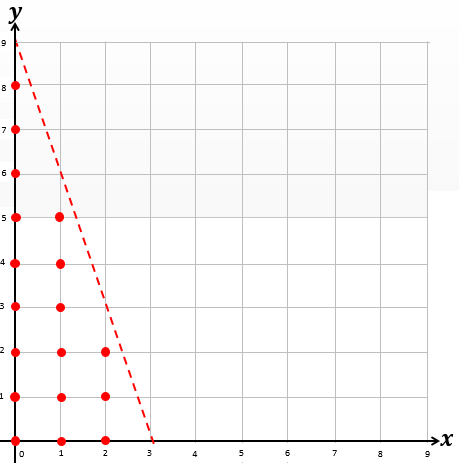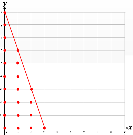 Ibu ingin membuat dua jenis kue A dan B. Kue A membutuhkan gula pasir sebanyak 1 kg dan kue B membutuhkan gula pasir sebanyak 3 kg. Ibu hanya membeli gula pasir sebanyak 9 kg. Daerah penyelesaian pertidaksamaan yang menggambarkan kondisi di atas adalah ....