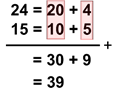 Ibu membeli 24 buah mangga di pasar. Di saat yang bersamaan, ayah membeli buah 15 buah mangga di super market. Semua buah mangga dimasukan ke dalam lemari es. Jumlah mangga di dalam lemari es adalah ... buah.