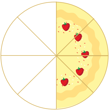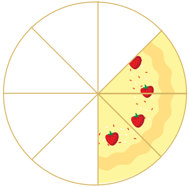 Ibu memberikan bagian kue kepada adik dan bagian kue kepada kakak. Banyak kue yang dimiliki adik dan kakak adalah ... bagian kue.