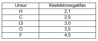 Pasangan elektron manakah yang mempunyai perbedaan keelektronegatifan besar.