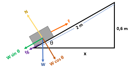 Indra memindahkan kardus berisi buah ke dalam bak truk setinggi 60 cm untuk di kirim ke luar kota. Indra menggunakan bantuan bidang miring kasar sepanjang 2 m untuk mempermudah pekerjaannya menaikkan kardus tersebut. Setiap kardus memiliki massa 50 kg dan Indra memberikan gaya dorongan sebesar 600 N. Diketahui koefisien gesek kardus dengan lintasan 0,5 dan gaya gravitasi 9,8 m/s2. Besar usaha Indra memindahkan kardus tersebut adalah ...J.