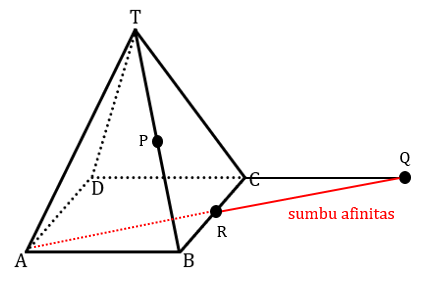 Irisan bidang yang terbentuk melalui titik A, P dan Q pada limas di atas adalah ….