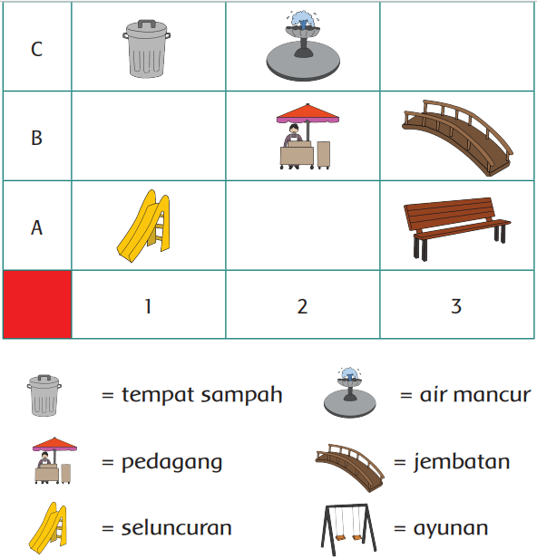 Isilah titik-titik sesuai gambar taman bermain! Tentukan posisi sesuai contoh!
