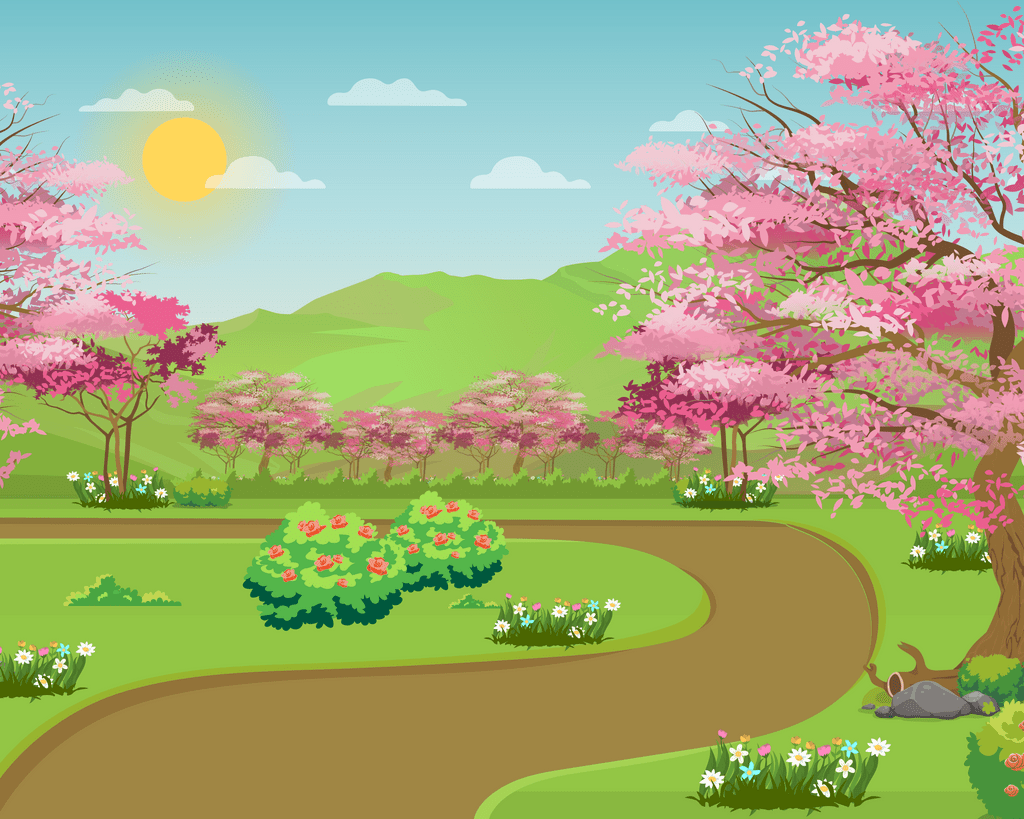 It is spring. The weather is warm. It is beautiful season because many tree grow their leaves and bloom.