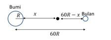 Jarak antara pusat bumi dan pusat bulan adalah 60 kali jari-jari bumi