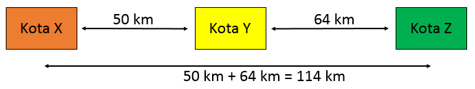 Jarak kota X ke kota Y adalah 50 km sementara jarak kota Y ke kota Z adalah 64 km. Jika sebuah bus berangkat dari kota X menuju kota Z dengan melewati kota Y maka jarak total yang ditempuh oleh bus tersebut adalah ... hm.