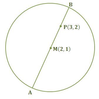 dengan MP adalah jarak titik P ke pusat lingkaran yaitu jarak titik ( 3 , 2 ) ke titik ( 2 , 1 ) .
