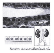 Jaringan epitel yang dapat ditemukan pada tubulus ginjal seperti pada gambar adalah. . . .