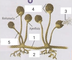 Jelaskan bagian jamur mikroskopis di bawah yang ditunjukan oleh nomor 4!