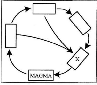 Jenis batuan tanda X pada siklus batuan seperti gambar terbentuk karena pengaruh ....