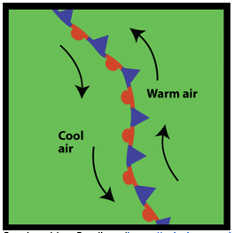 Jenis front yang terbentuk ketika terjadi pertemuan massa udara dingin dan massa udara panas bertemu dan saling mendorong satu sama lain, tapi tidak cukup kuat untuk memindahkan yang lainnya sehingga posisinya tetap adalah ….