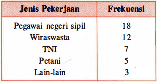 Jenis pekerjaan orang tua murid dari 45 siswa kelas XII adalah seperti data di bawah ini.