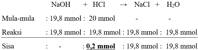 Jika 99 mL NaOH 0,2 M dicampurkan dengan 100 mL HCl 0,2 M maka pH campuran adalah