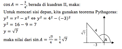 Jika dengan 90o < A < 180o, maka nilai dari sin A = ....