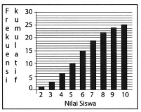 Jika diagram batang di bawah ini memperlihatkan frekuensi kumulatif hasil tes Matematika siswa kelas XII maka persentase siswa yang memperoleh nilai adalah