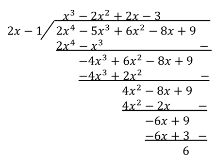 Jika dibagi dengan , maka hasil bagi dan sisanya berturut-turut adalah ….