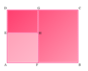 Jika diketahui AB = 144 cm dan BC = 108 cm, persegi panjang ABCD, BCGF, dan EHGD merupakan persegi panjang yang sebangun, maka luas daerah AFHE adalah....