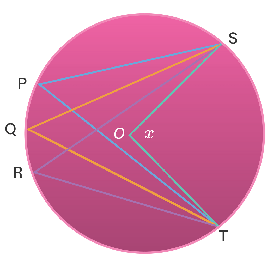 Jika ketiga jumlah sudut keliling adalah . Tentukan besar sudut !