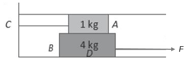 Jika koefisien gesek yang berlaku pada sistem berikut ini adalah 0,1 maka berapakah gaya F yang diperlukan untuk menarik keluar balok B sehingga bergerak dengan percepatan ?