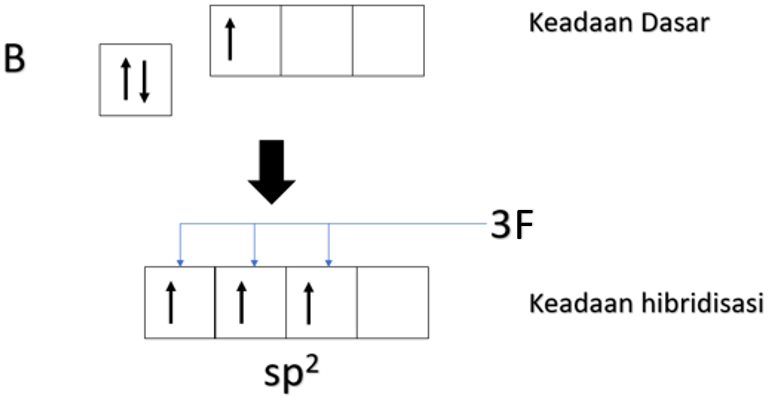 Jika nomor atom B adalah 5 dan nomor atom F adalah 9, maka hibridisasi dari adalah