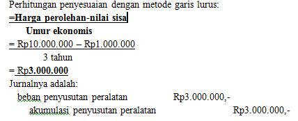 beban penyusutan peralatan Rp3.000.000,-