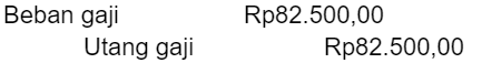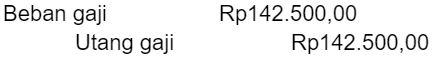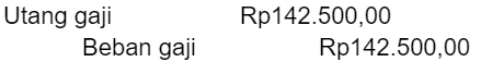 Jika PT Banyu Biru Abadi setiap tanggal 25 membayar gaji karyawan sebesar Rp225.000,00 dan pada saat tutup buku tanggal 31 Desember 2015 ternyata masih ada beban yang harus dibayar sebesar Rp142.500,00. Jurnal penyesuaian untuk transaksi tersebut adalah ....