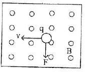 Jika q adalah muatan listrik positif, v adalah gerak muatan, B medan magnet dan F adalah arah gaya magnet, maka gambar yang tepat untuk sebuah muatan yang melintasi medan magnet adalah ...