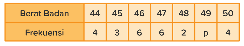 Jika rata-rata berat badan dari tabel berikut adalah 47, tentukan nilai !