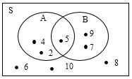 Jika S = {1,2,3,4,5,6,7,8,9,10}, A = {1,2,3,4,5} dan B = {3,5,9}. Maka, bentuk diagram venn yang tepat adalah…