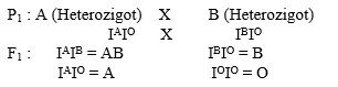 Jika seorang wanita bergolongan darah A heterozigot menikah dengan pria golongan darah B heterozigot, maka kemungkinan golongan darah anak-anaknya adalah…