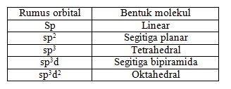 Jika suatu senyawa memiliki hibridisasi sp3d2, maka bentuk molekul senyawa tersebut adalah....