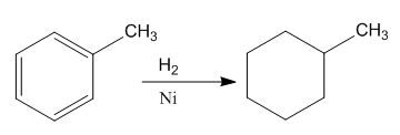 Jika toluena direaksikan dengan gas hidrogen menggunakan katalis Ni, akan menghasilkan senyawa ....