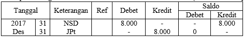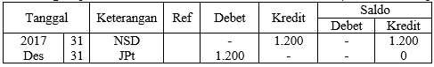 Jurnal penutup PD. Kanako Momota per 31 Desember 2017 adalah sebagai berikut: