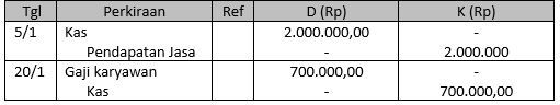 Jurnal umum perusahaan jasa angkutan per Januari 2013 berikut ini: