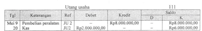 Peralatan Kas Utang usaha |