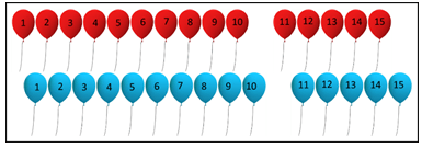 balon biru sama banyak dengan balon merah