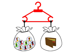 Berat sebuah dompet sama dengan sepuluh buah kelereng
