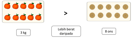 1 kotak jeruk lebih berat dari 1 kotak kue