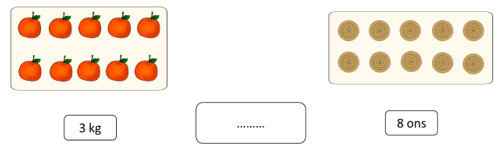 1 kotak jeruk sama beratnya dengan 1 kotak kue