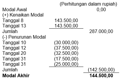 Susunlah persamaan akuntansi dari keterangan tersebut. Dan analisalah modal. Berapa modal mula-mula, dan berapa modal akhir? Uraikan penambahan atau pengurangan modal.