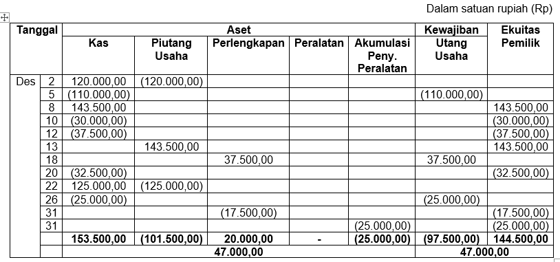 Kantor konsultan pajak Mulyono pada 1 Desember 2017 membukukan transaksi berikut! Transaksi bulan Desember